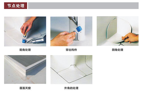 4、根據施工設計,在屋面彈出天溝中心及分水中心線,在大面積鋪貼之前,并對特殊部位如天溝、檐溝、女兒墻、立墻、水落口、伸出屋面的管道及設備基礎轉角及陰陽角處進行涂刷防水涂料或加貼附加層(加強帶),對分格縫內填嵌密封材料并加鋪附加層。